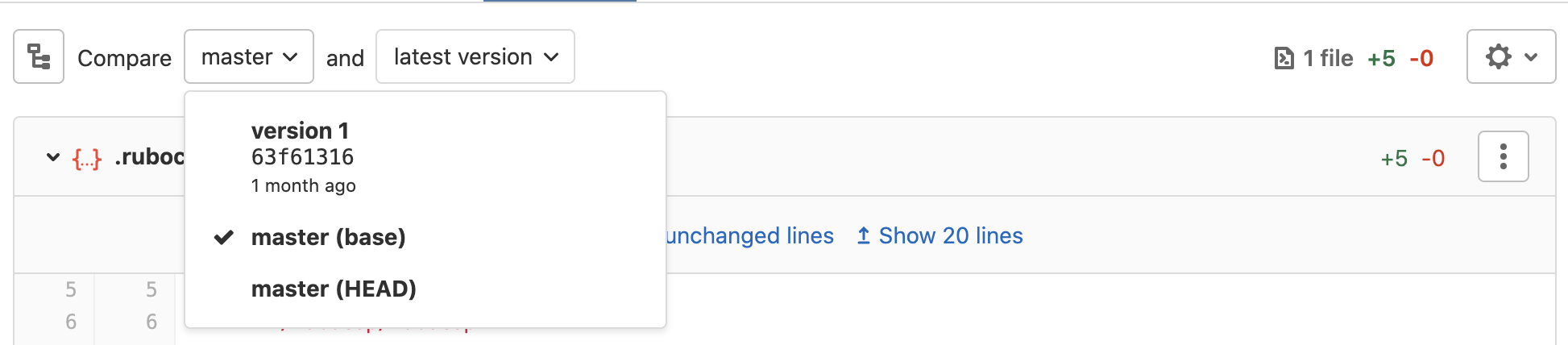 both options main (base) and main (HEAD) are available to be displayed in merge requests: